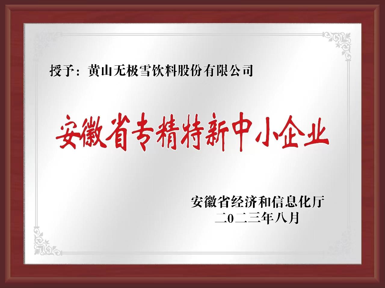 喜訊!黃山無(wú)極雪榮獲2023年度安徽省“專(zhuān)精特新”中小企業(yè)稱(chēng)號(hào)